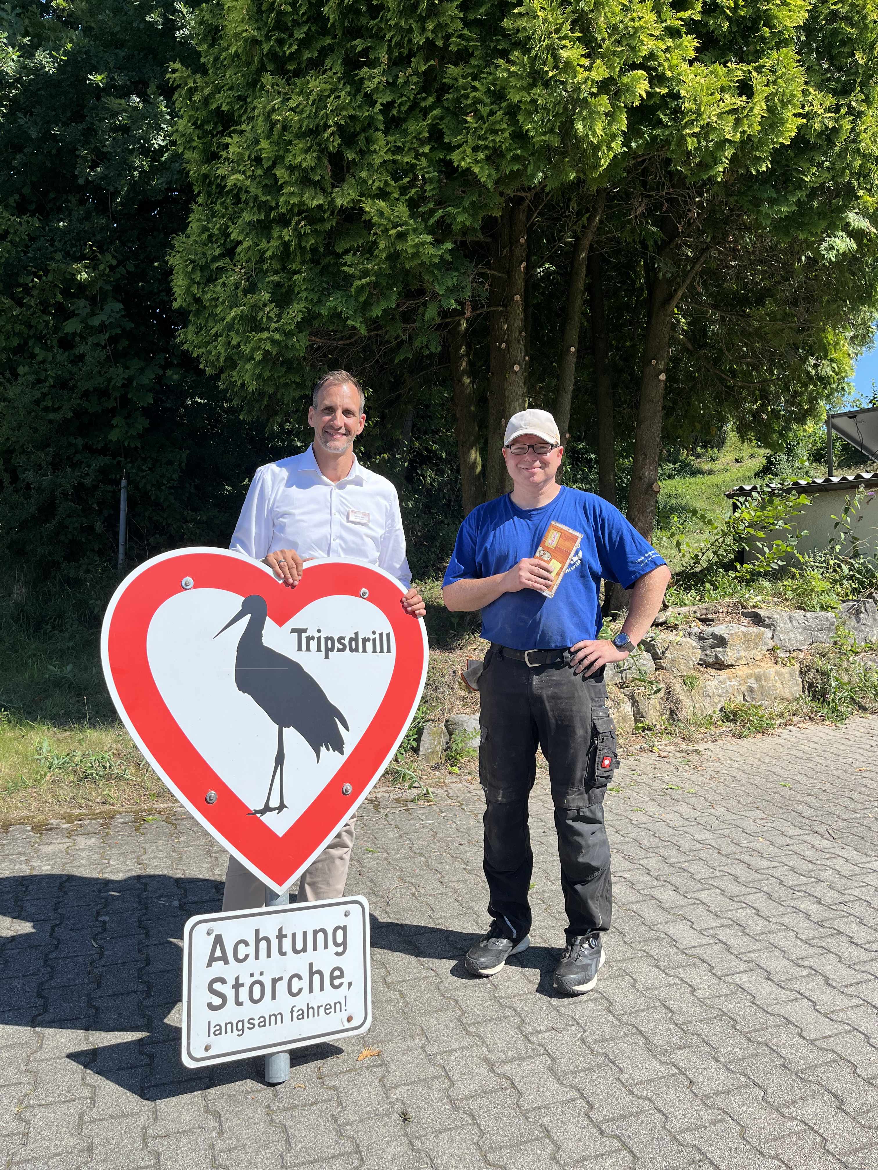 Nach dem Diebstahl des beliebten Storchenschildes an der Kreisstraße K2069 bei Tripsdrill, sorgt die Geschichte nun für ein erfreuliches Ende: Beim Stutzen von Bäumen entdeckte Herr S. aus Talheim (bei Heilbronn/N.) das beliebte Schild am Rande seines Grundstücks. Offenbar hatten Unbekannte es nach der Tat dort abgelegt.